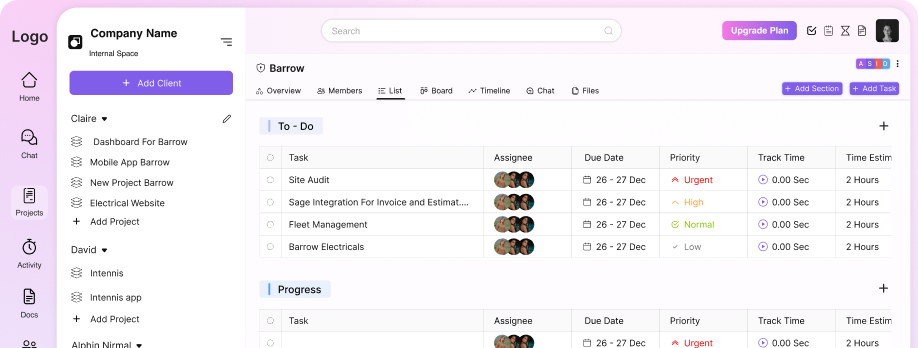 Easily manage all your clients, teams, and tasks in one unified platform. Switch between client projects and track real-time updates, streamlining workflows and team management with our project management software.